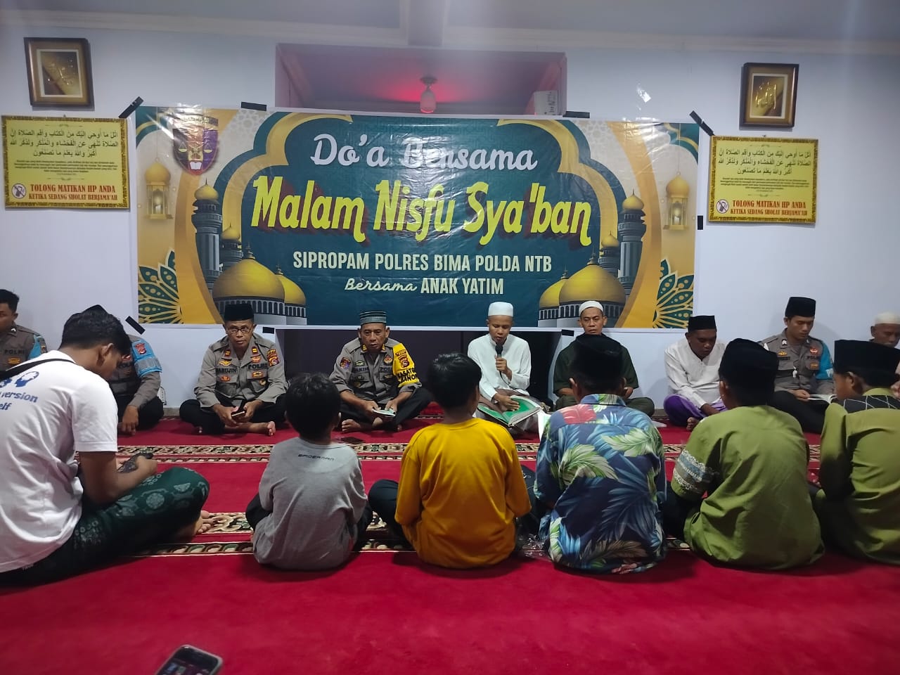 Bima, NTB (17/2) – Malam Nisfu Sa,ban dan menjelang Bulan Suci Ramadhan Si Propam Polres Bima Polda NTB menggelar Do,a Bersama dan Santuni anak yatim.