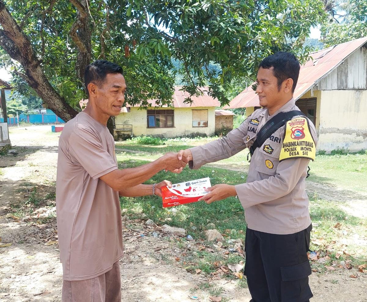 Bima, NTB (05/4) – Bripka Syamsu rizal Spd, Bhabinkamtibmas Polsek Monta Polres Bima Polda NTB menyerahkan sarana kontak berupa sarung sholat kepada warga binaan di Sie Kecamatan Monta Kabupaten Bima Minggu, 31/03/24 sekira pukul 13.00. WITA.