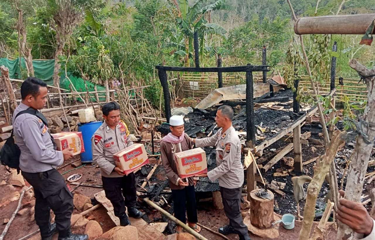 Bima, NTB (17/11) – Kapolsek Donggo Polres Bima Polda NTB Iptu Nazaruddin menyalurkan bantuan kepada korban Kebakaran yang menghanguskan sebuah rumah Panggung 6 tiang Milik warga Desa Bumi Pajo Kecamatan Donggo Kabupaten Bima Kamis (16/11/23) sekira pukul 09.55. WITA.