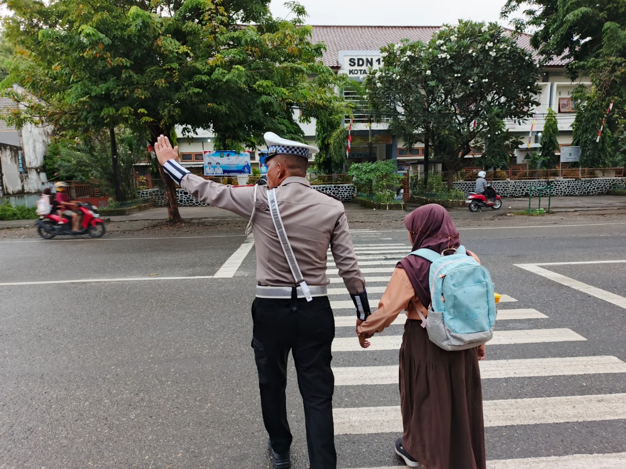 Ia menambahkan, personel Sat Lantas juga turut membantu menyeberangkan pejalan kaki, khususnya anak-anak sekolah, sebagai bentuk kepedulian dan pelayanan prima kepada masyarakat.