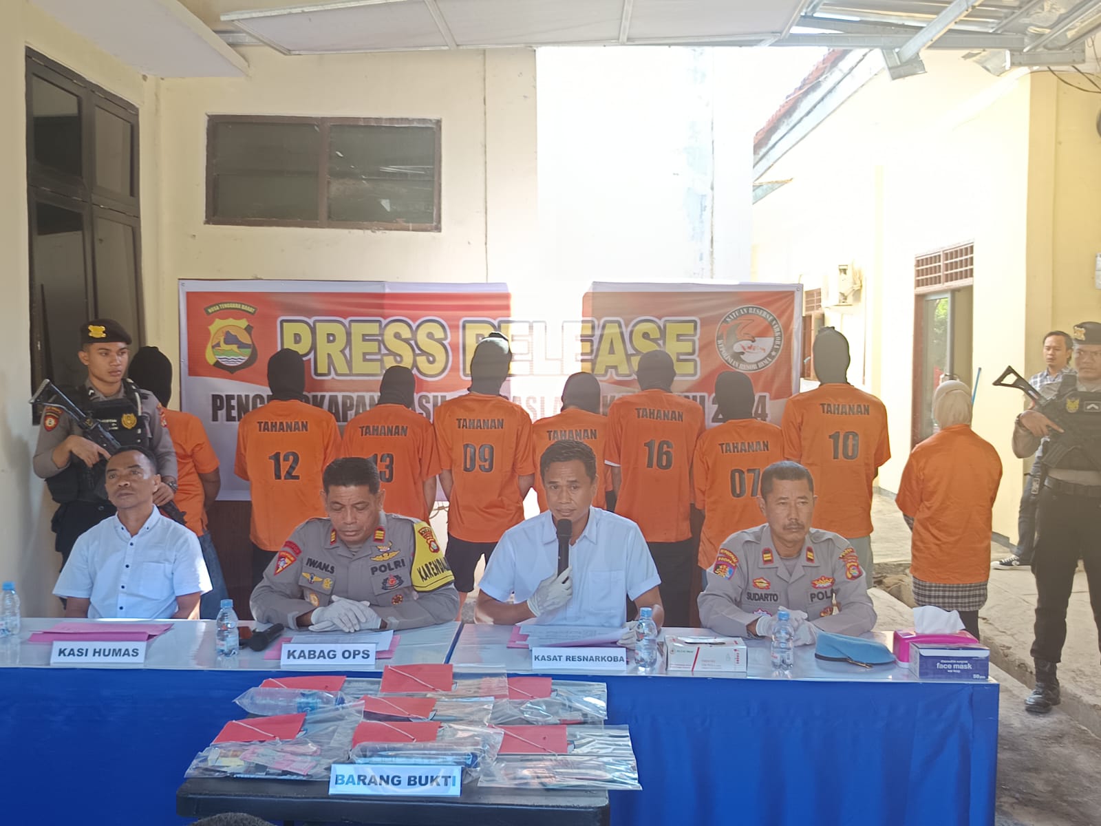 “Jadi secara keseluruhan jumlah tersangkanya 10 orang dan jumlah BB Narkotika jenis Shabu Netto 11,64 gram serta uang tunai sejumlah Rp. 4.856.000,” ujar AKP Iwan Sugianto.