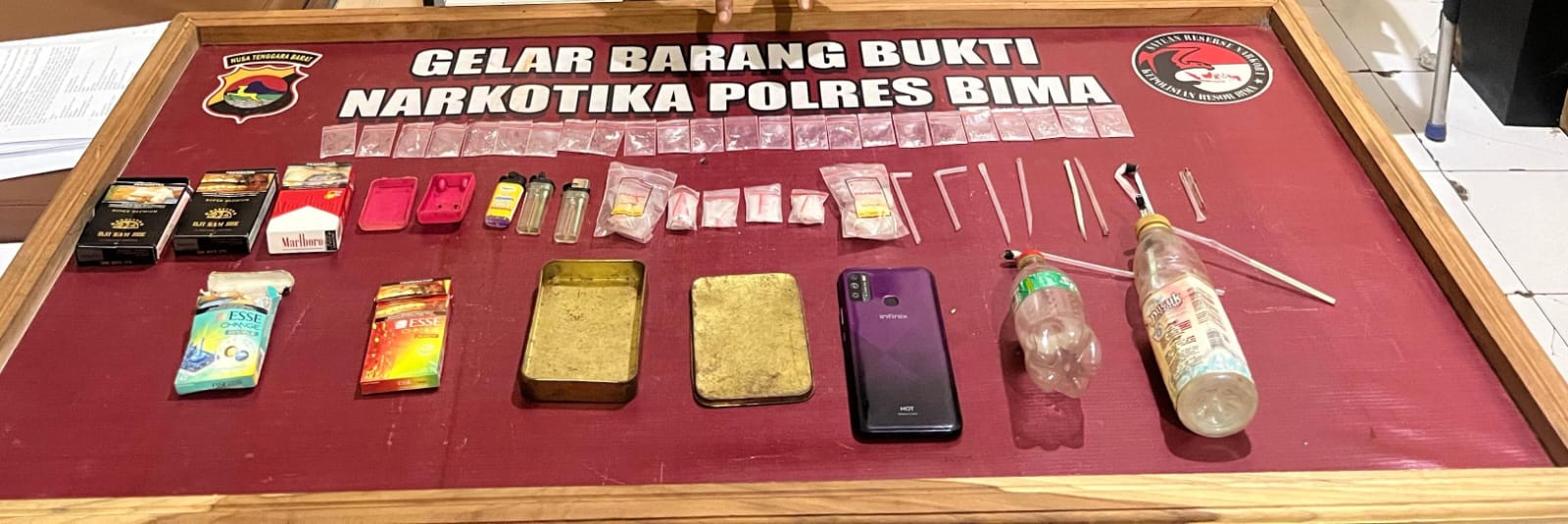 Namun dalam operasi itu Satresnarkoba Polres Bima berhasil mengamankan barang bukti (BB) Shabu seberat 1,00 gram (satu koma nol-nol gram) yang sudah di bagi menjadi 24 pocket siap edar dan sejumlah barang bukti lainnya yang berkaitan dengan tindak pidana Narkotika sesuai dengan UU RI No 35.tahun 2009 tentang Narkotika.