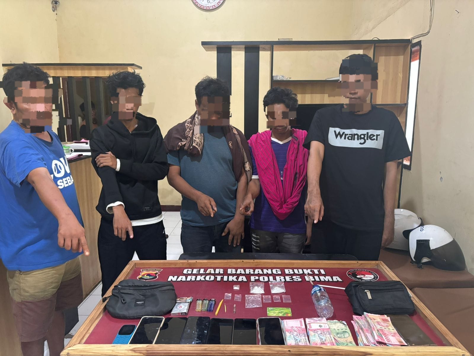“Lima orang terduga ini berhasil diamankan di satu TKP, yakni di rumahnya saudara EK,” ungkap Kapolres Bima, AKBP Eko Sutomo, S.I.K, M.I.K, lewat Kasat Resnarkoba, Iptu Fardiansyah, SH, Senin (13/01/25) sebagaimana dirilis Humas Polres setempat.