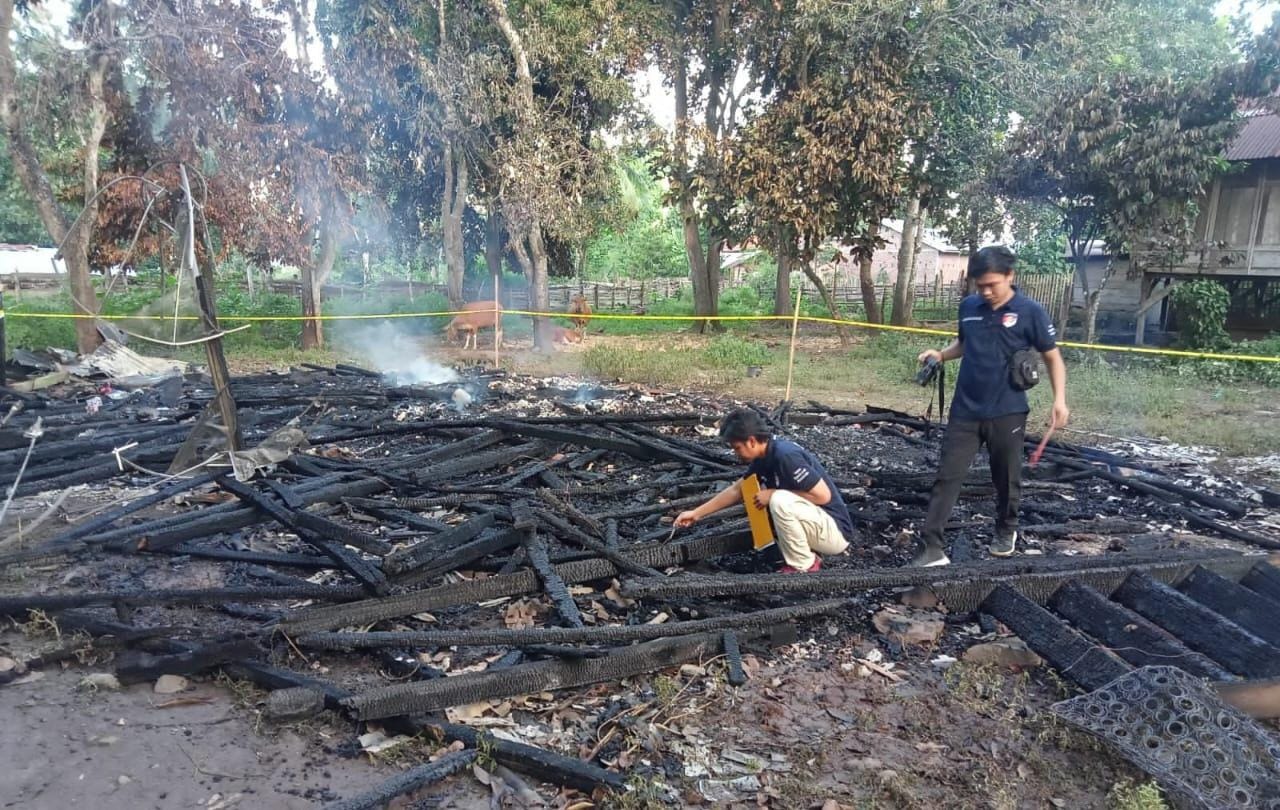 Kronologi,Rumah Panggung 12 tiang yang ludes rata dengan tanah dllahap oleh si jago merah iti saat ini di tempati oleh RD (L/40) warga Desa Parado Kuta dan keluarganya.