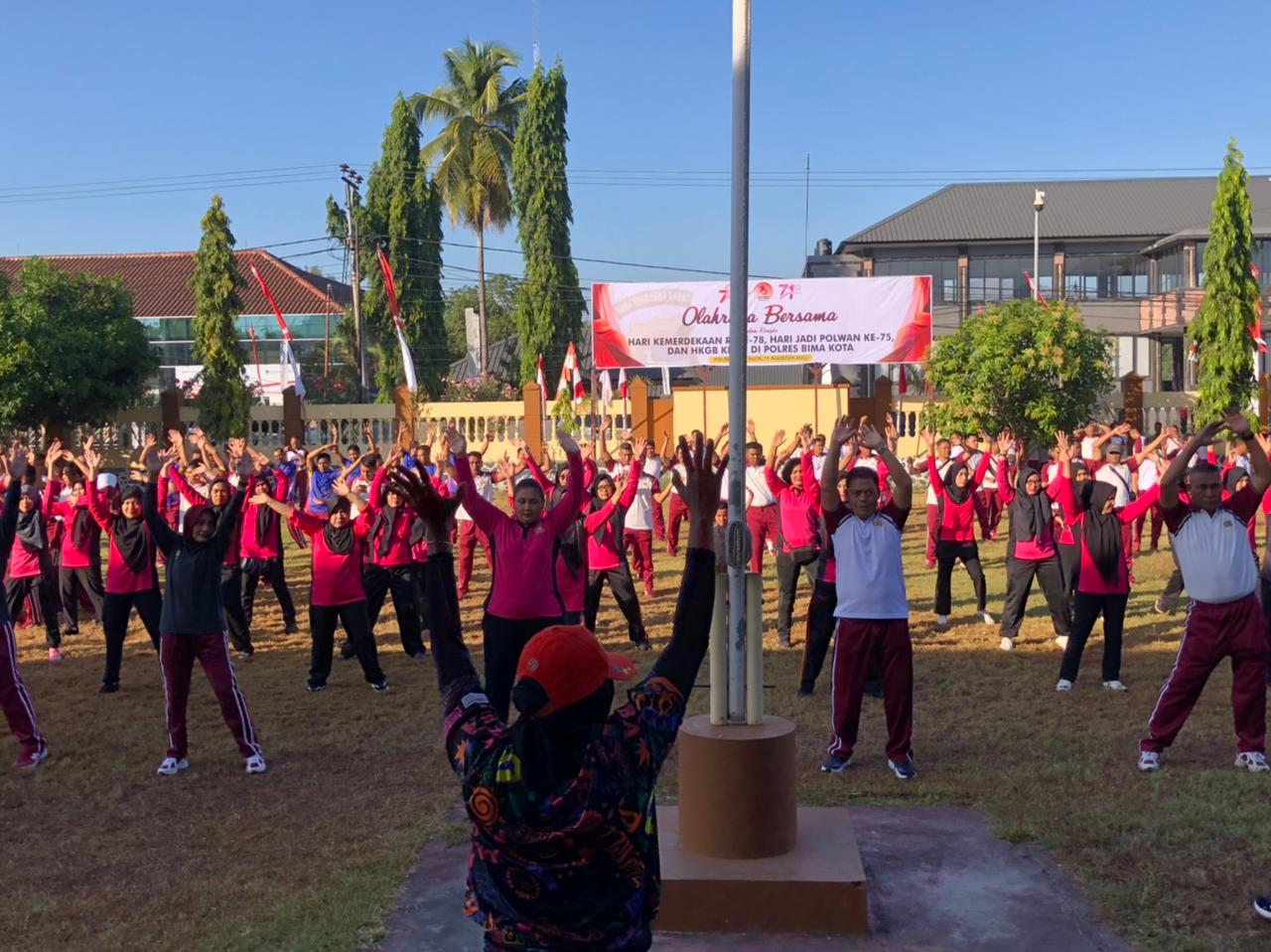 Kota Bima, NTB (11/8) – Semarak memperingati Dirgahayu Republik Indonesia yang ke-78 tahun, Polres Bima Kota mengawali dengan giat olahraga bersama seluruh personil.