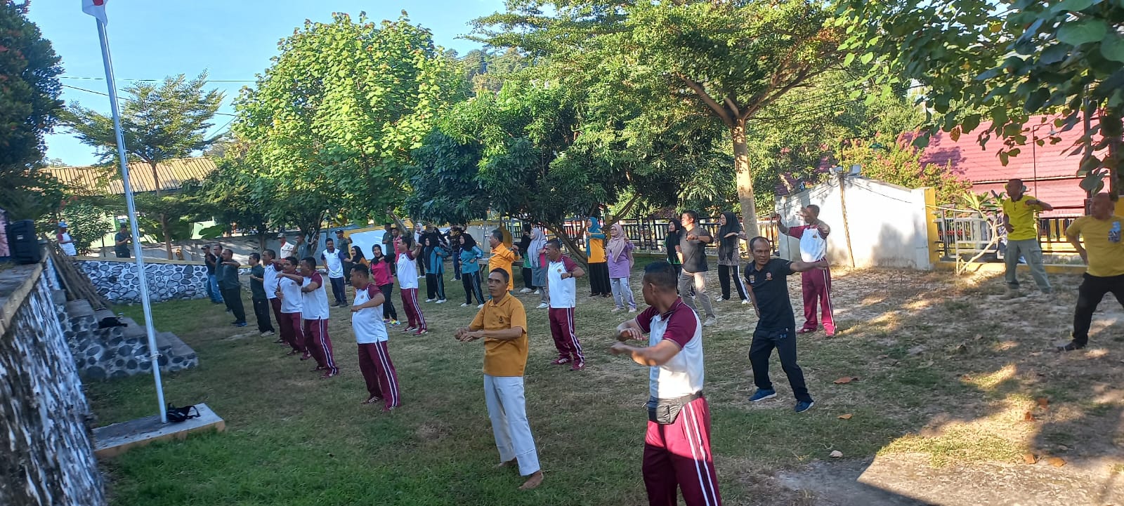 Kegiatan senam bersama ini tidak hanya diikuti oleh para pejabat dan anggota TNI-Polri, tetapi juga oleh para pegawai Aparatur Sipil Negara (ASN) di lingkup Kecamatan Wawo. Hal ini menunjukkan komitmen bersama seluruh elemen masyarakat untuk mewujudkan Kecamatan Wawo yang kondusif dan aman.