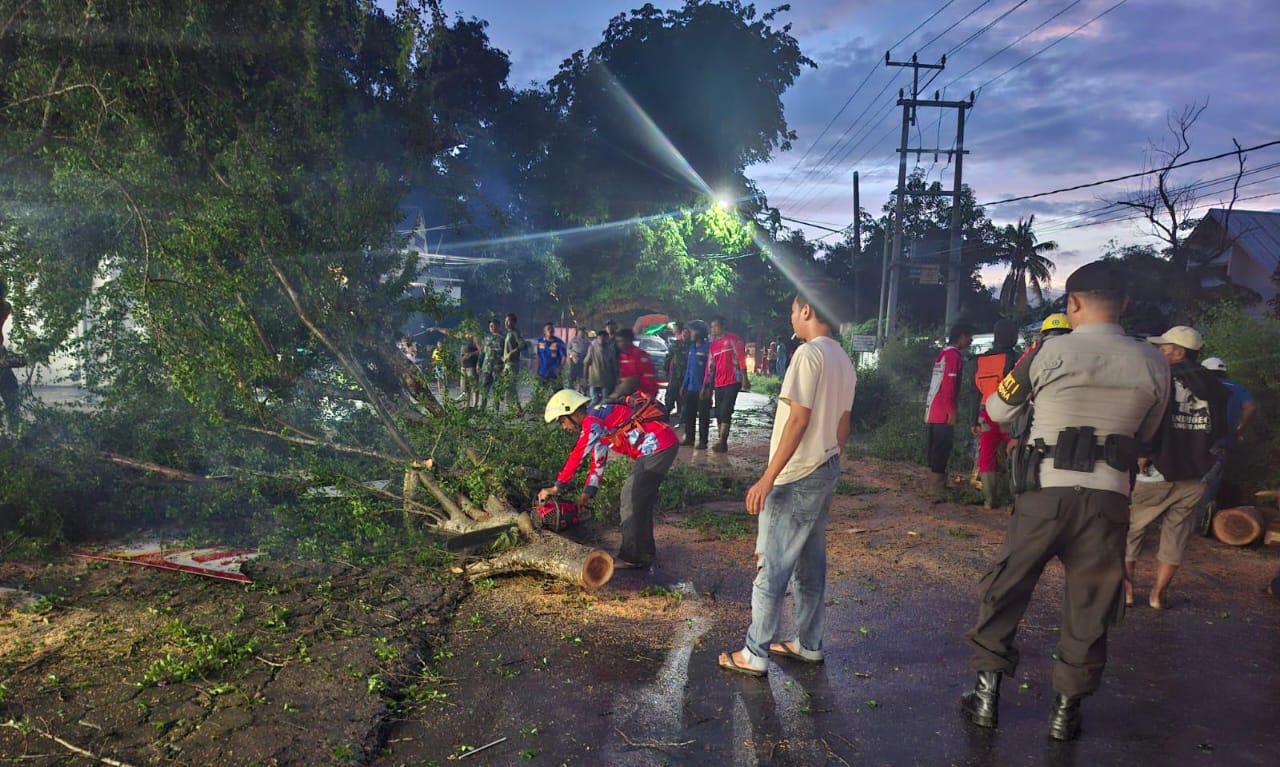 Namun dengan kebersamaan antara Polri, TNI dan masyarakat sekitar pohon tumbang itu dapat dievakuasi dan arus lalulintas kembali Normal.