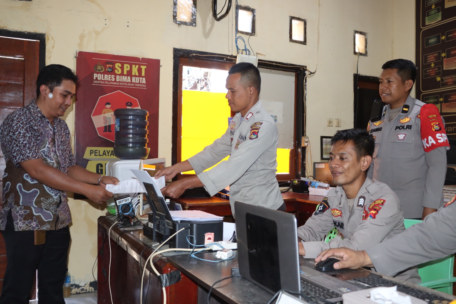 Kapolres Bima Kota AKBP Didik Putra Kuncoro, S.I.K., M.Si., melalui KA SPKT Ipda Muhammad, S.Sos., menjelaskan bahwa selain menerima laporan, petugas juga sigap memberikan penjelasan dan solusi terhadap kebutuhan warga.