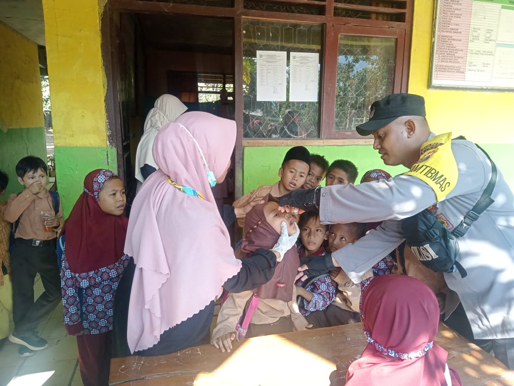 Bima, NTB (28/7) – Sukseskan Program Pemerintah Bebas Polio, Bhabinkamtibmas Polsek Belo Polres Bima Polda NTB dampingi Petugas Nakes Dalam rangka mendukung dan menyukseskan program Pemerintah yakni pencanangan Pekan Imunisasi Nasional (PIN) Polio.