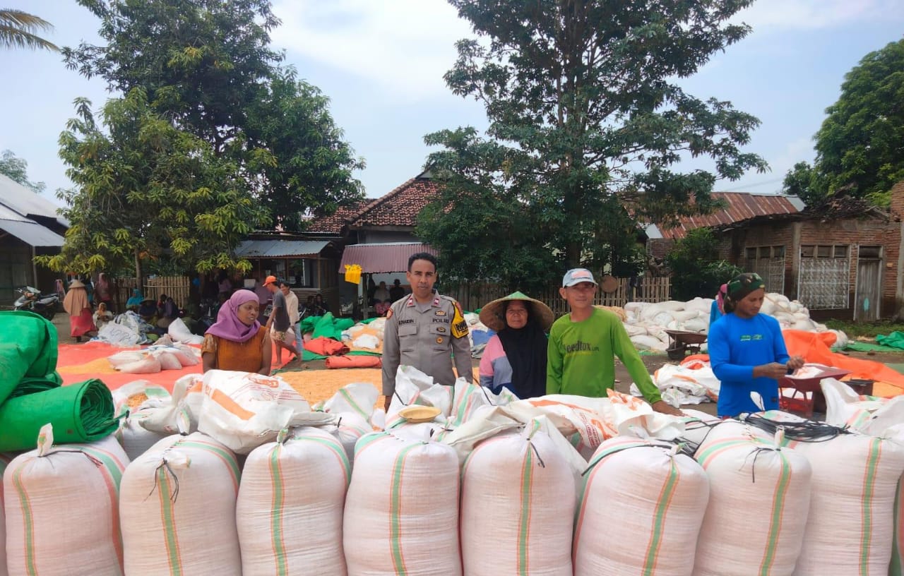 Terkini bhabinkamtibmas Desa Rada Aipda Junaidi menyempatkan diri memantau proses penjemuran dan pengumpulan jagung milik warga binaan pada Kamis (10/4/25) sore kemarin.