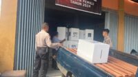 Personel Satgas Preventif Amankan Pergeseran Kotak Suara dari Gudang Logistik ke Kantor KPU Kota Bima