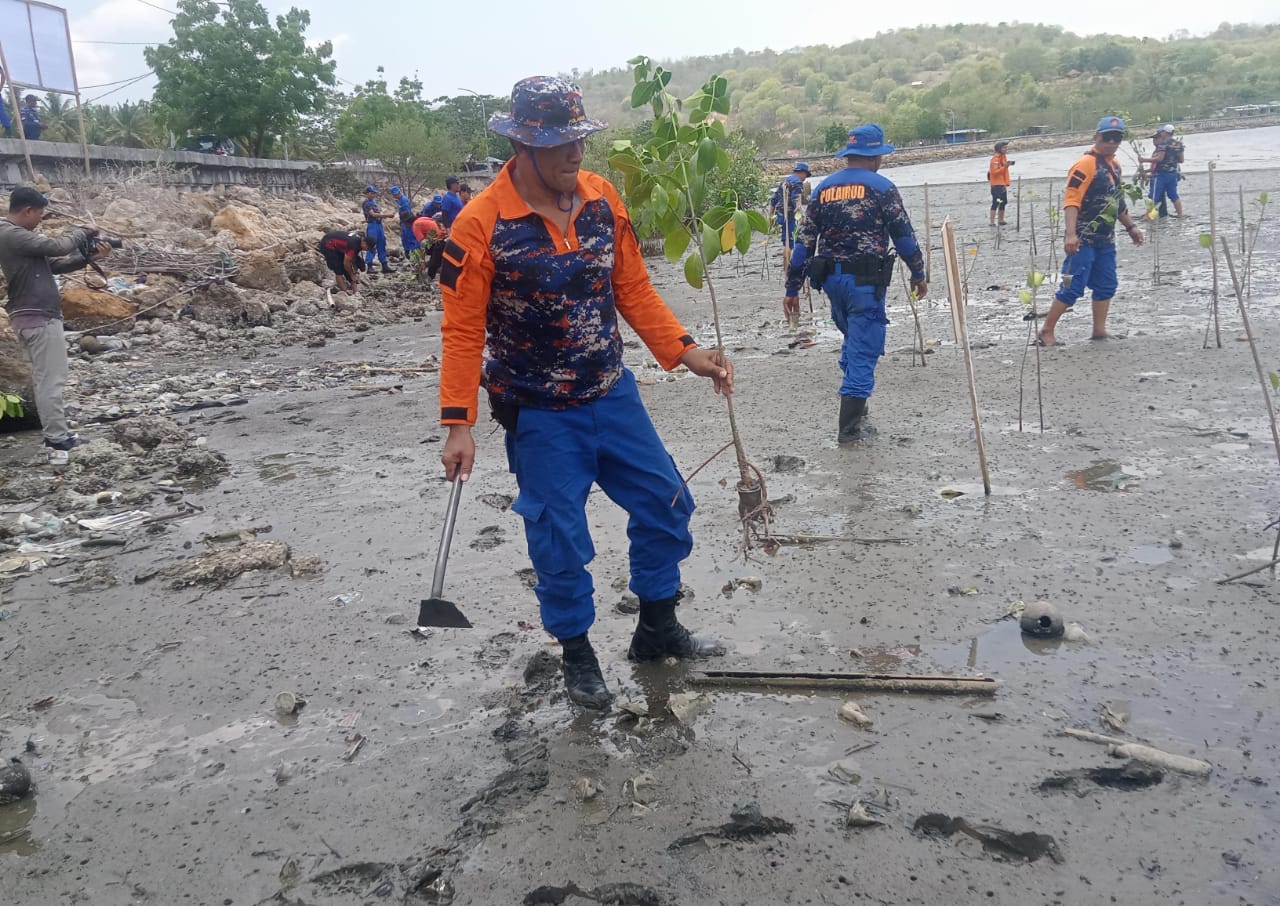 Kota Bima,NTB (26/11) – Dalam rangka menyambut HUT POLAIRUD yang ke-73, personel Satuan Polisi Perairan dan Udara (Satpolairud) Polres Bima Kota bersama dengan gabungan personel Satpolairud dari Polres Bima Kabupaten, Polres Dompu, dan Polres Sumbawa (Pulau Sumbawa) melaksanakan kegiatan penanaman pohon mangrove. Kegiatan ini merupakan upaya untuk meningkatkan kesadaran lingkungan dan menjaga keberlanjutan ekosistem pantai.