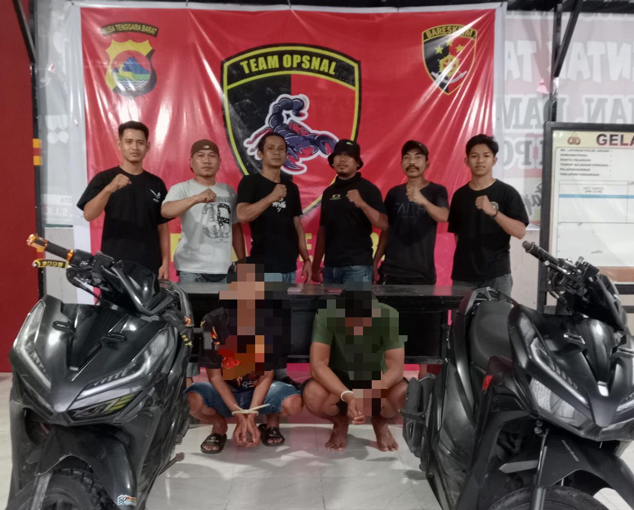 Tim Opsnal Polsek Rasana’e Barat menerima laporan atas kejadian tersebut dan berhasil melacak keberadaan sepeda motor korban di wilayah Kabupaten Dompu. Dengan informasi tersebut, tim melakukan penyamaran dan berusaha melakukan transaksi dengan pelaku. Setelah beberapa upaya, akhirnya pelaku tertangkap saat melakukan transaksi di SPBU Karijawa, Kelurahan Karijawa, Kecamatan Dompu, Kabupaten Dompu. Tanpa membuang waktu, tim berhasil menyergap para pelaku beserta barang bukti tanpa perlawanan.