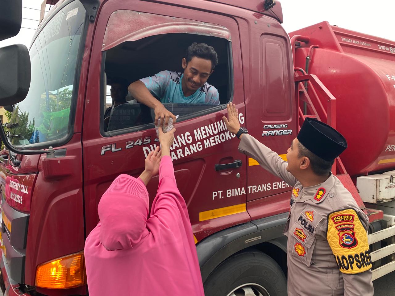 Kapolres Bima Kota didampingi oleh Ketua Bhayangkari Cabang Bima Kota, Ny. Mira Didik, bersama para pengurus Bhayangkari serta Pejabat Utama (PJU) Polres Bima Kota. Selain membagikan takjil kepada pengguna jalan yang melintas, Kapolres juga memberikan sosialisasi dan imbauan kepada masyarakat agar senantiasa menjaga keamanan dan ketertiban selama Ramadan.