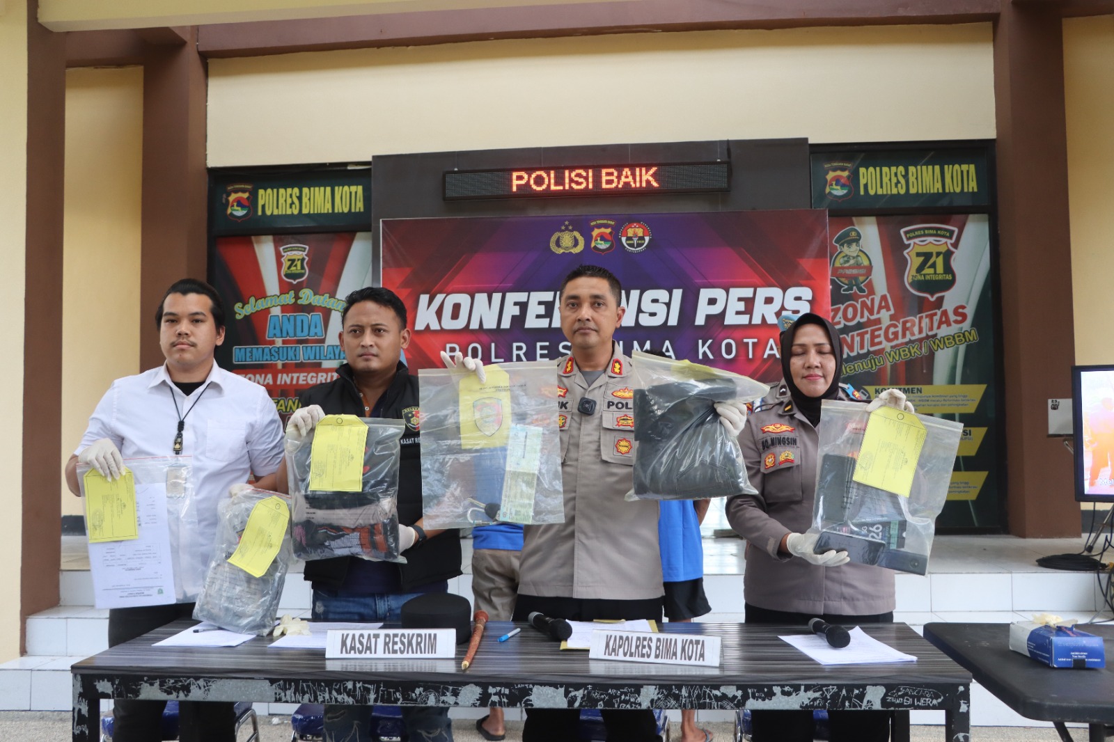 Konferensi pers terkait penetapan tersangka ini digelar di Mako Polres Bima Kota pada Sabtu Sore (20/9/2025). Kapolres Bima Kota AKBP Didik Putra Kuncoro, S.IK, M.Si, didampingi Kasat Reskrim AKP Dwi Kurniawan Kusuma Putra dan Kasi Humas Ipda Baiq Ningsih, menjelaskan bahwa ketiga tersangka memiliki peran berbeda dalam aksi pembakaran tersebut.