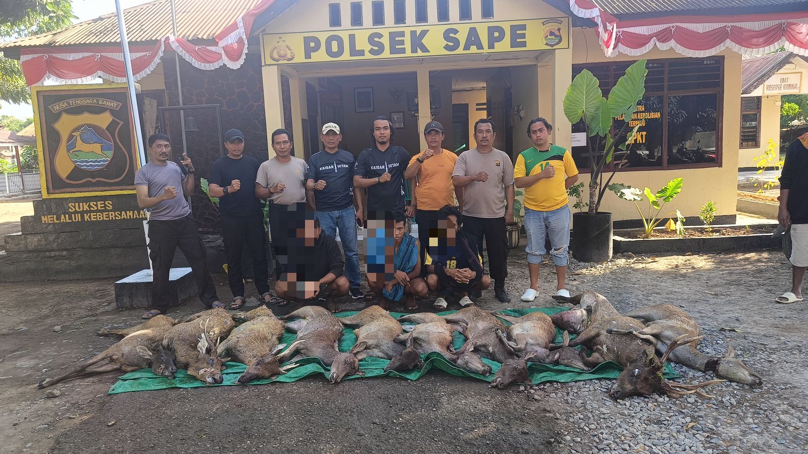 Sape, Bima NTB (09/9) – Tiga warga Kecamatan Monta, Kabupaten Bima, diamankan oleh Polsek Sape dan Unit Intel Kodim 1608 Bima pada Minggu, 9 Oktober 2024. Mereka diduga membawa 10 rusa hasil tangkapan dari Pulau Komodo, NTT. Kesepuluh rusa tersebut sudah disembelih dan diduga akan dijual dagingnya di Bima.