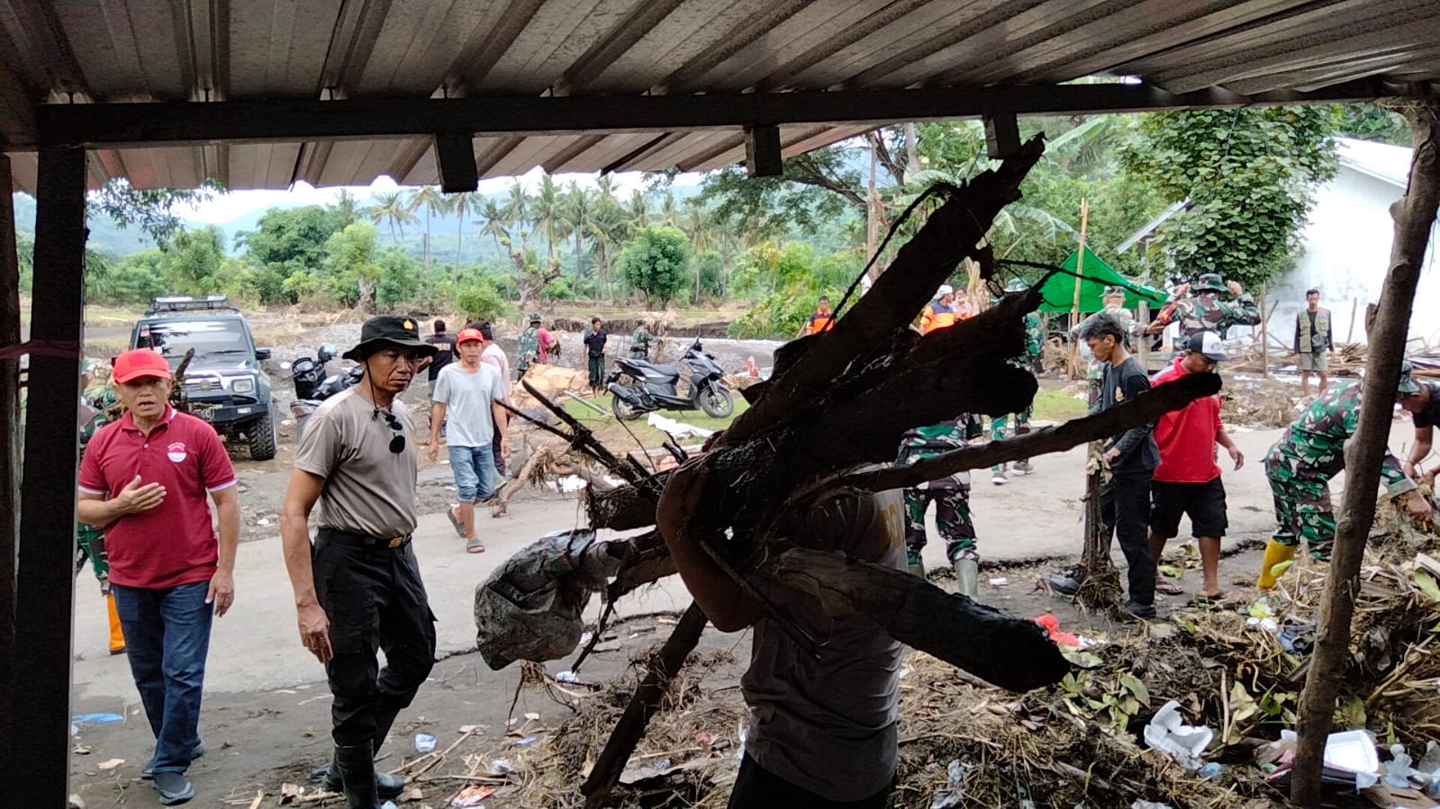 Bima, 8 Februari 2025 – Tim gabungan yang terdiri dari personel TNI-Polri, BPBD Kabupaten Bima, serta Pemerintah Kecamatan Wera bersama warga setempat bergotong-royong membersihkan sisa material banjir bandang yang melanda Dusun Karuwu, Desa Nanga Wera, Kecamatan Wera, Kabupaten Bima, pada Minggu, 2 Februari lalu. Kegiatan ini dimulai sejak pukul 08.40 WITA.