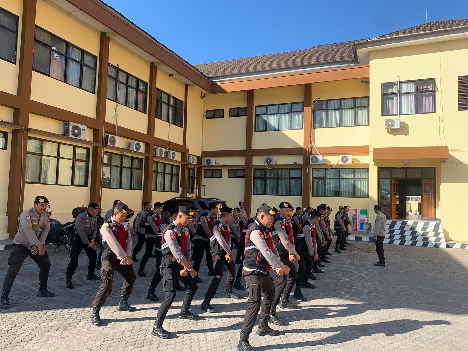 Pada Rabu pagi kemarin, personil Sat Samapta selaku garda terdepan yang menghadapi massa sewaktu- waktu bila terjadi, saat Pemilu berlangsung, dilatih secara fisiknya.