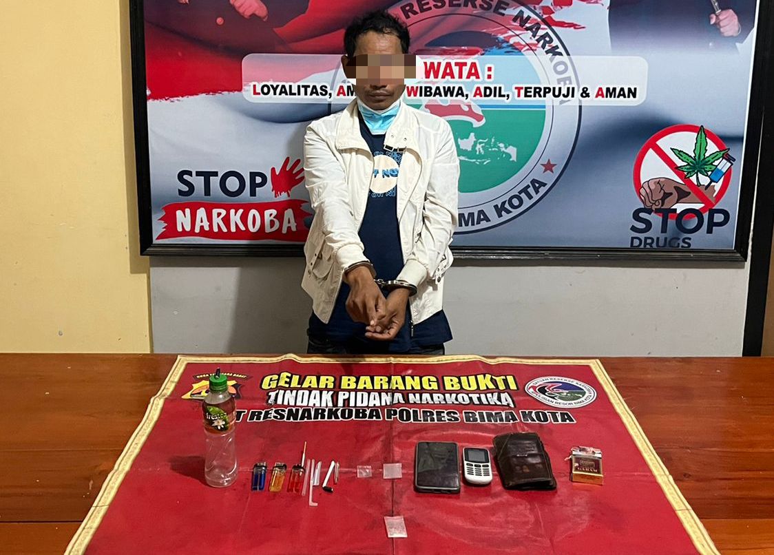 Tim Cobra Alpha Sat Narkoba Polres Bima Kota dibawah pimpinan Katim Bripka Wahyudin dan anggotanya, Sabtu (17/6/2023) malam sekira pukul 22.30 Wita, sukses mengungkap dan menangkap seorang warga Kota Bima yang diduga menguasai narkotika jenis sabu.