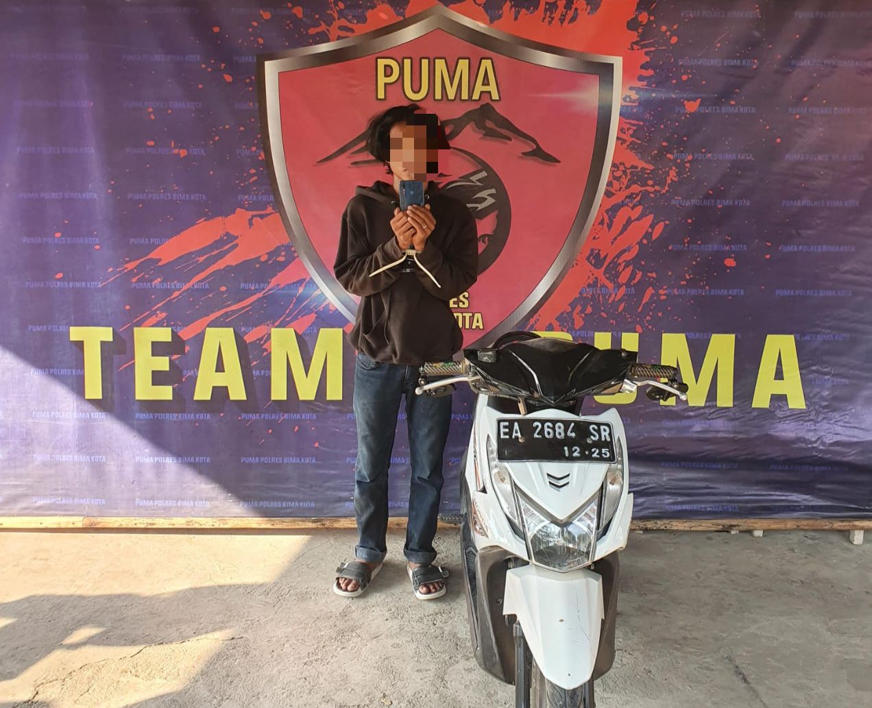 EA (23) warga Kecamatan Raba Kota Bima yang beraksi merampas sepeda motor milik korban warga Kelurahan Oi Fo,o Kecamatan Rasanae Timur Kota Bima, disergap Tim Puma 1 Selasa 31 Oktober 2023 siang tadi sekira pukul 14.30 Wita.