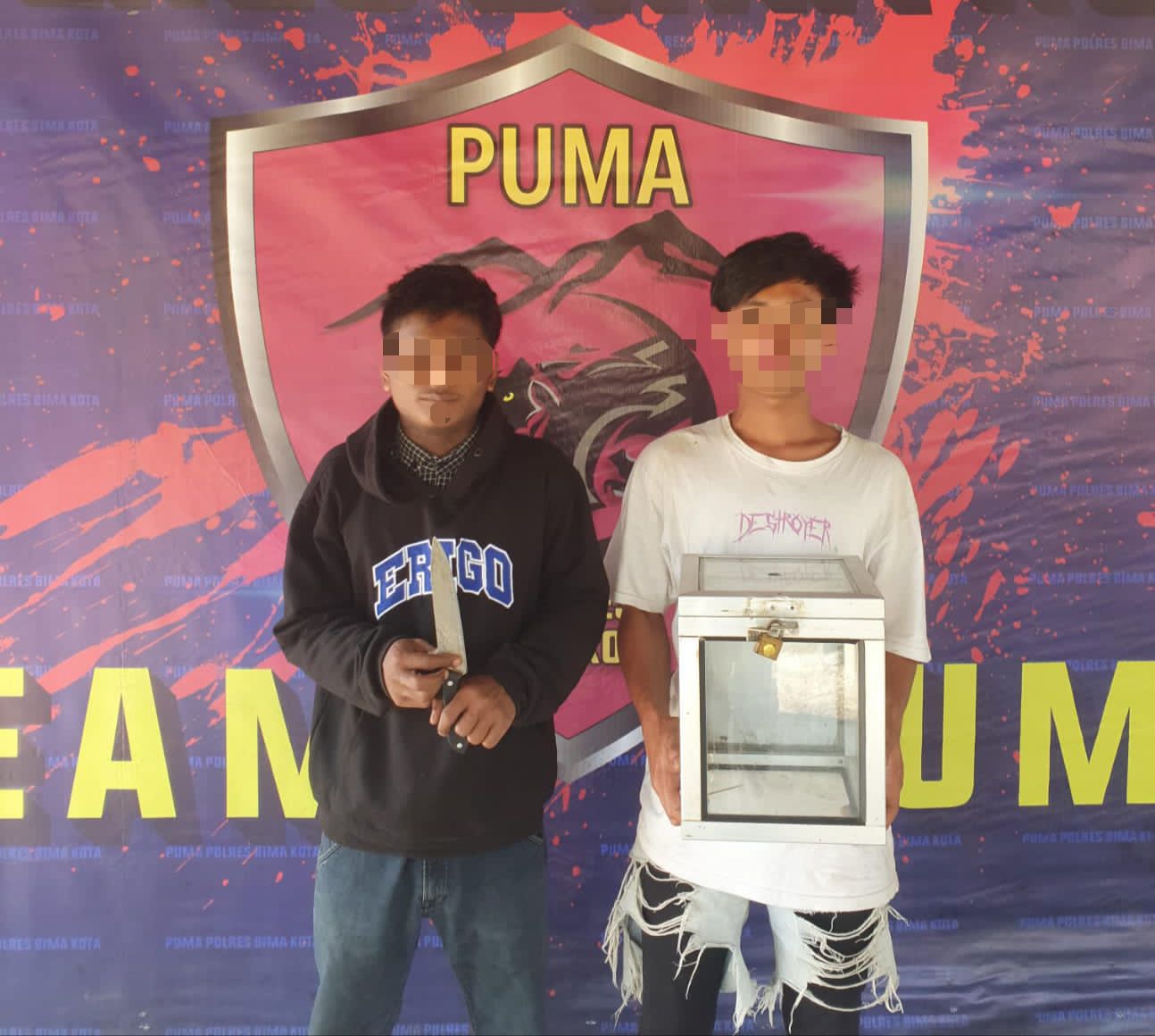 Dua pelaku yang membobol kedai bakso di wilayah Kota Bima, lalu mencuri uang kotak amal yang ada di kedai bakso.