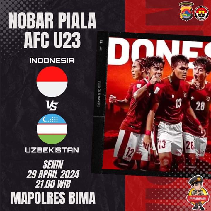 Bima, NTB (30/4) – Kepala Kepolisian Resor Bima Polda NTB Ajun Komisaris Besar Polisi (AKBP) Eko Sutomo S.I.K., M.I.K., mengadakan Nonton bareng/ Nobar semi final Timnas Indonesia U-23 VS Uzbekistan U23 di Lapangan Apel Mapolres Bima