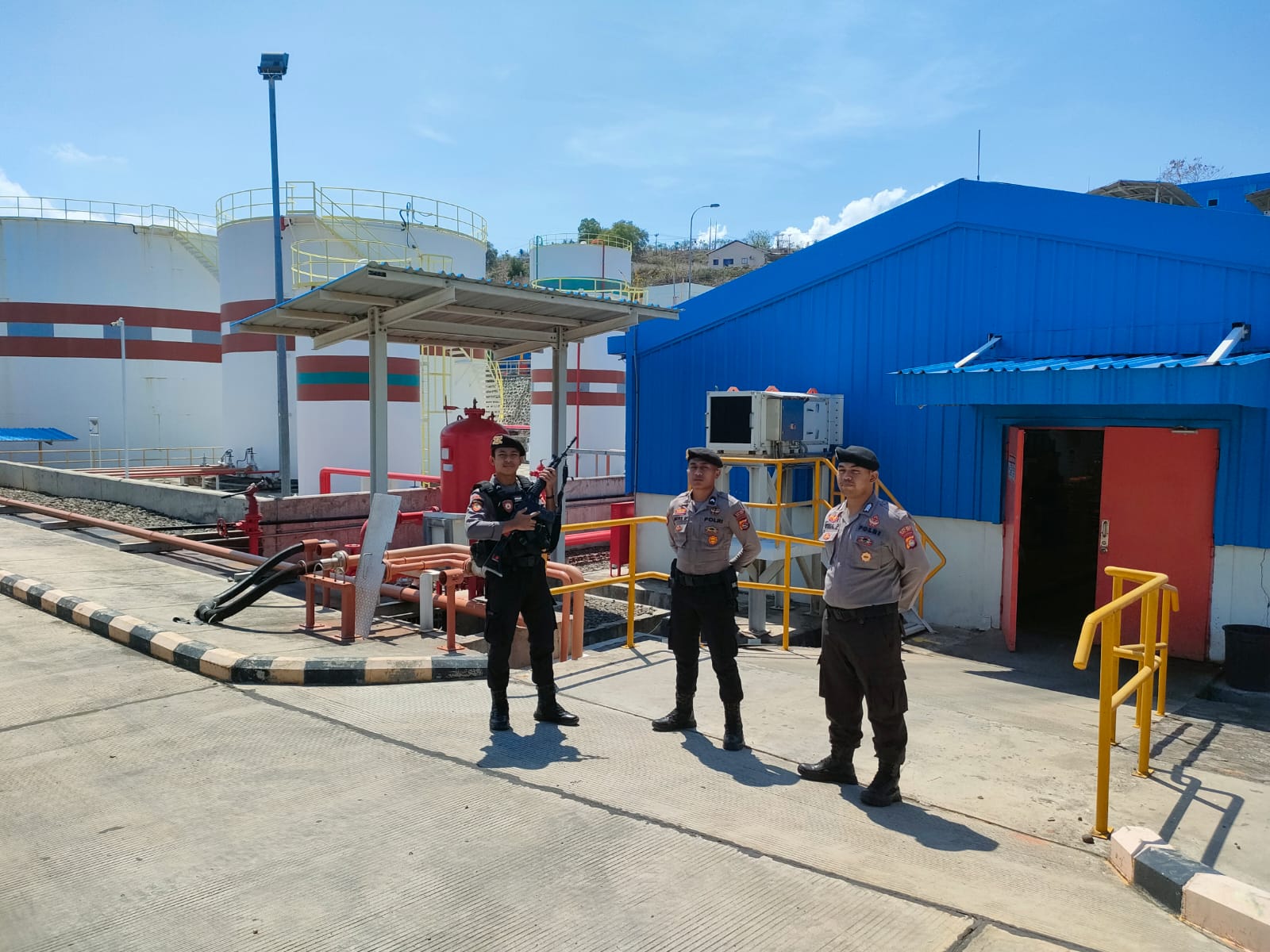 Kota Bima, NTB, (24/12) – Unit Obvit Sat Samapta Polres Bima Kota, dalam upaya menjaga keamanan dan keselamatan lingkungan, melaksanakan pengamanan dan patroli di Objek Vital Pembangkit Listrik Tenaga Mesin Gas (PLTMG) Bonto Bima.