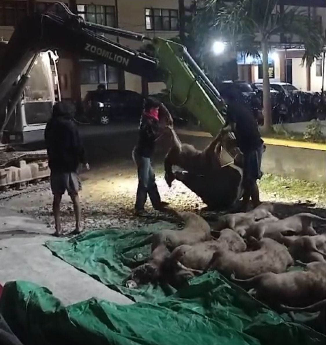 Dalam keterangannya, Iptu Franto menjelaskan bahwa dari 10 ekor rusa yang dimusnahkan, terdapat 4 ekor pejantan dan sisanya merupakan rusa betina. Pemusnahan dilakukan dengan cara ditanam karena kondisi barang bukti sudah rusak dan membusuk.
