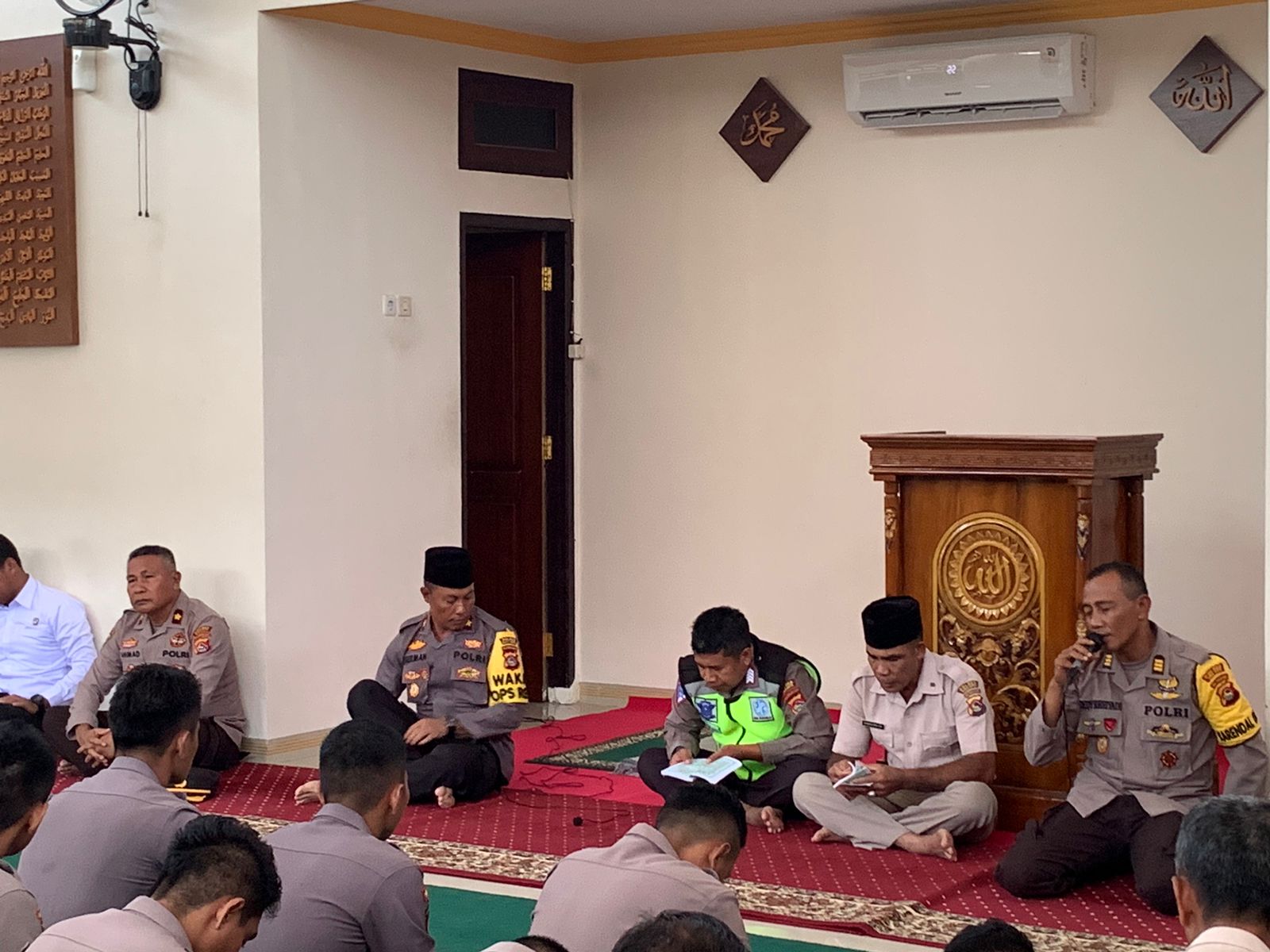 Kota Bima,NTB (19/10) – Waka Polres Bima Kota, Kompol Herman, S.H, memimpin kegiatan Binrohtal (Bimbingan Rohani Islam) yang diadakan di Masjid Jabal Qubis, Polres Bima Kota. Kegiatan ini merupakan wujud dari perhatian dan kepedulian pimpinan terhadap pembinaan rohani bagi personil yang beragama Islam di lingkungan Polres Bima Kota.