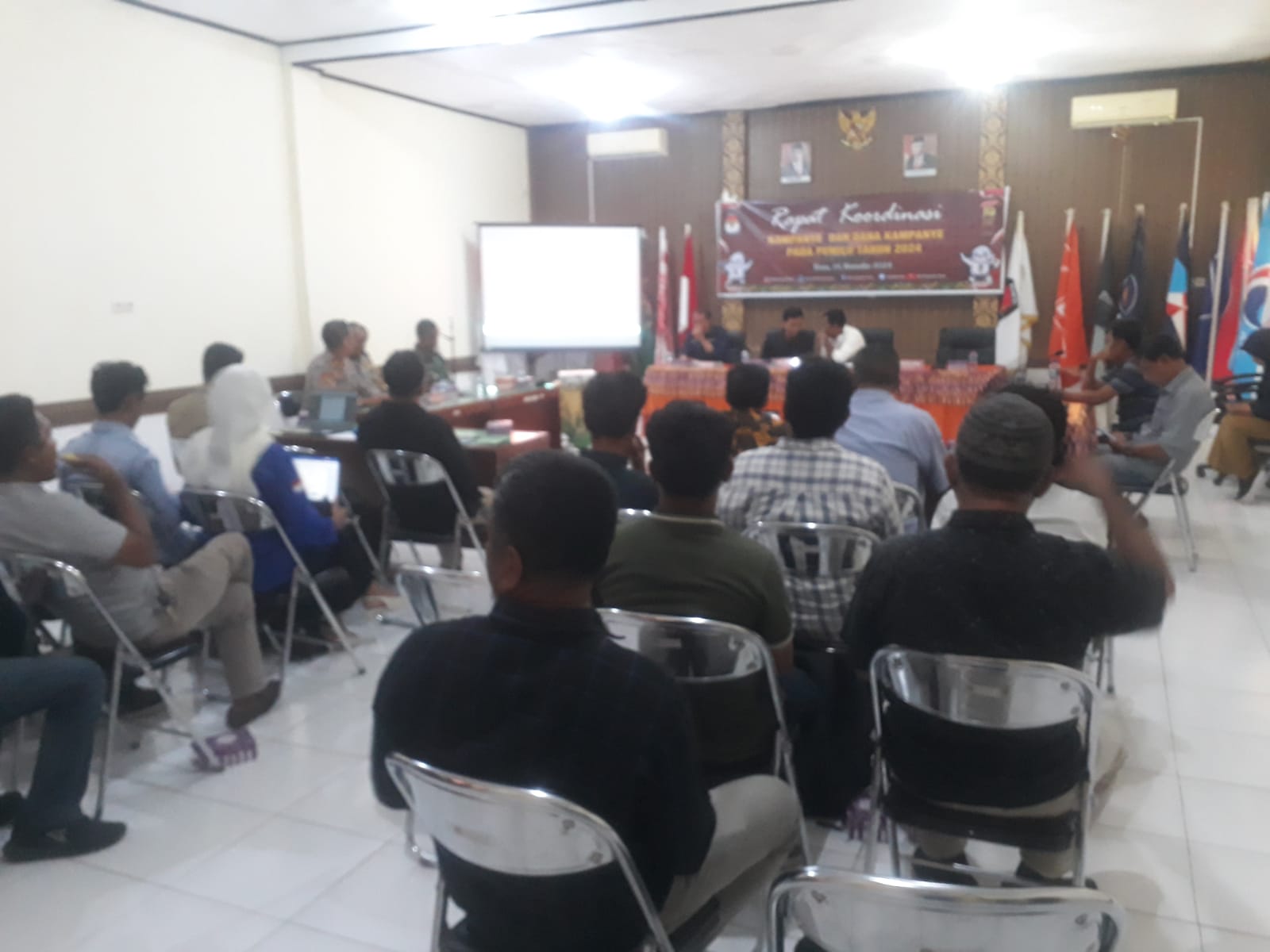Rapat koordinasi tersebut berlangsung di Aula kantor Komisi Pemilihan umum kabupaten Bima Sabtu (25/11/23) sekira Pukul 10.00.Wita.