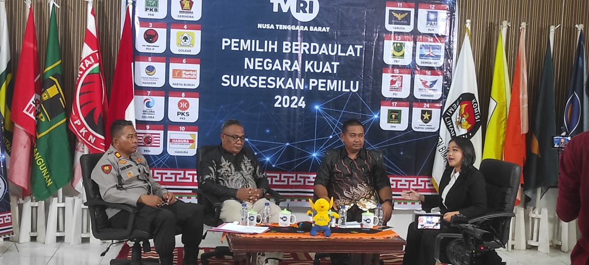 Bima, NTB (27/10) – Kapolres Bima, AKBP Hariyanto, SH, S.I.K, yang diwakili Kepala Seksi Hukum, AKP I Wayan Sada Sutra, S.H, menjadi salah satu nara sumber dalam wawancara TVRI NTB yang digelar di Aula Kantor KPU Kabupaten Bima, Kamis (26/10/2023) Pukul 16.00. Wita