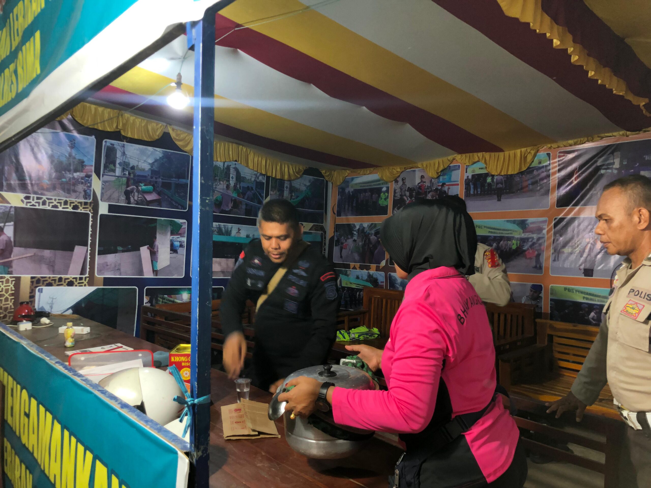 Bima, NTB (18/4) – Memberikan Support dan dukungan Moral kepada personel Pos Pengamanan Operasi Ketupat Rinjani 2024, Pengurus Bhayangkari Ranting Woha Polres Bima Polda NTB mengunjungi Pos PAM.