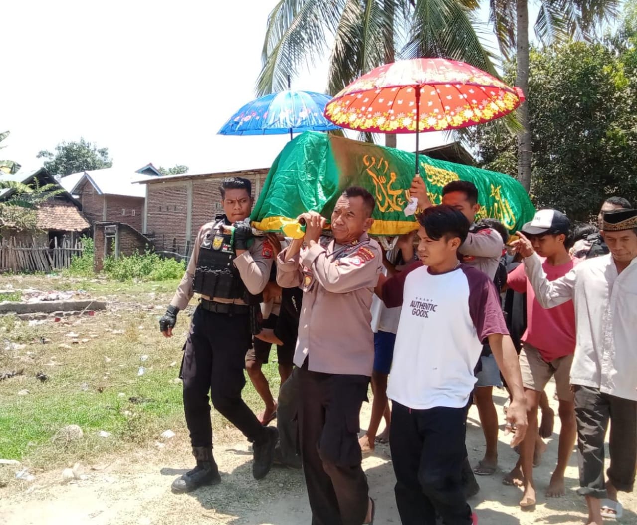Personel Polres Bima, Polsek Monta dan personel Brimob juga ikut mengurus proses pemakan Jenazah hingga mengantarkan jenazah almarhum ke tempat peristirahatan terakhir Almarhum di TPU Desa Setempat.