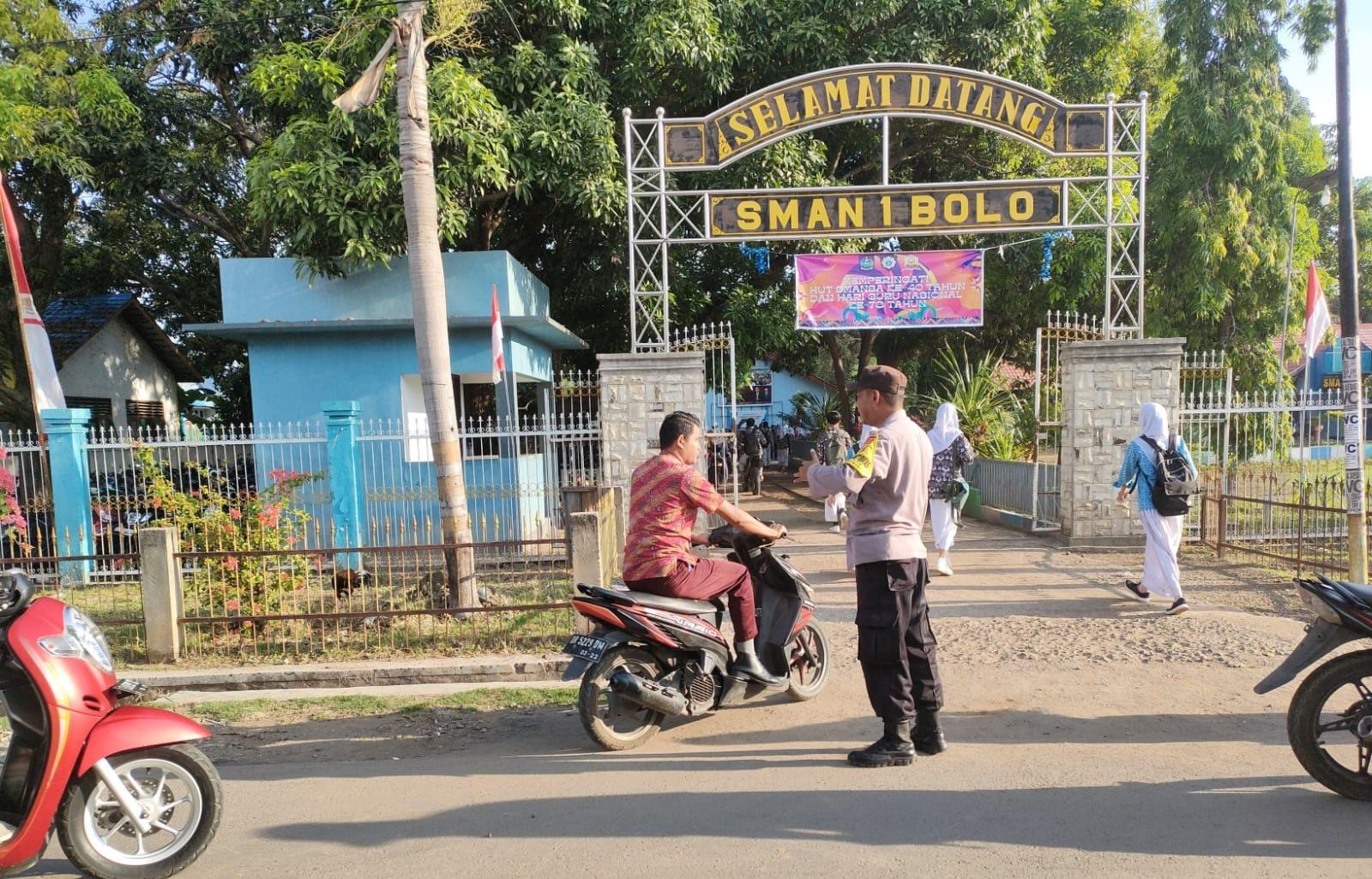 Bima, NTB (30/11) – Guna ciptakan keamanan dan ketertiban berlalu lintas saat masyarakat memulai aktivitas pagi hari, Polsek Bolo polres Bima Polda NTB melaksanakan pengaturan lalu lintas di simpul jalan dan didepan sekolah.