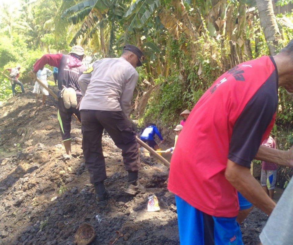 Kegiatan kerja bakti ini difokuskan pada pembersihan saluran air irigasi untuk memastikan kelancaran pasokan air ke sawah-sawah masyarakat, yang sangat penting dalam menunjang aktivitas pertanian warga.