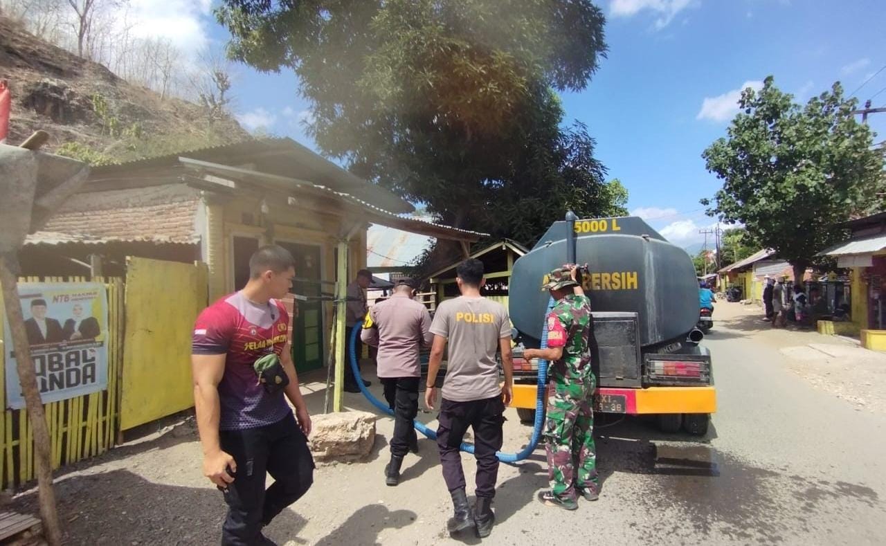 Bima, NTB (10/9) – Kepolisian Sektor Belo Polres Bima Polda NTB dan Jajaran Kodim 1608/Bima menyalurkan bantuan berupa air bersih bagi masyarakat Desa Runggu Kecamatan Belo Kabupaten Bima.